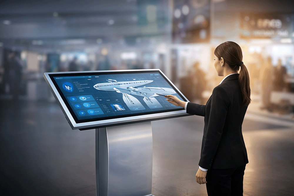 NUERIE Touch Screen Kiosk is a modern interactive digital signage solution designed for high-traffic public environments.